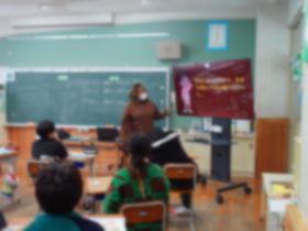 これは5年生の、外国語の学習の様子です。今回は冬休み明け最初の授業で、二ア先生のアメリカに帰国した話を聞きました。遠く離れた地での話に子どもたちは興味津々。飛行機に乗っている時間を聞いて、「そんなにかかるの!」と驚く声が… -
