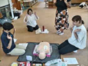 例えば、救命救急法の研修です。専門の方に教わりながら胸部圧迫法やAED使用の仕方などを…