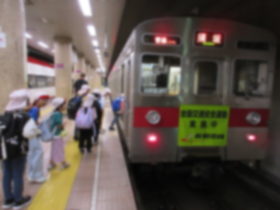 長野電鉄の長野駅から善光寺下駅までは、電車に乗りました。券売機で一人一人切符を買い、駅員さんに切符を見せて改札を通って…